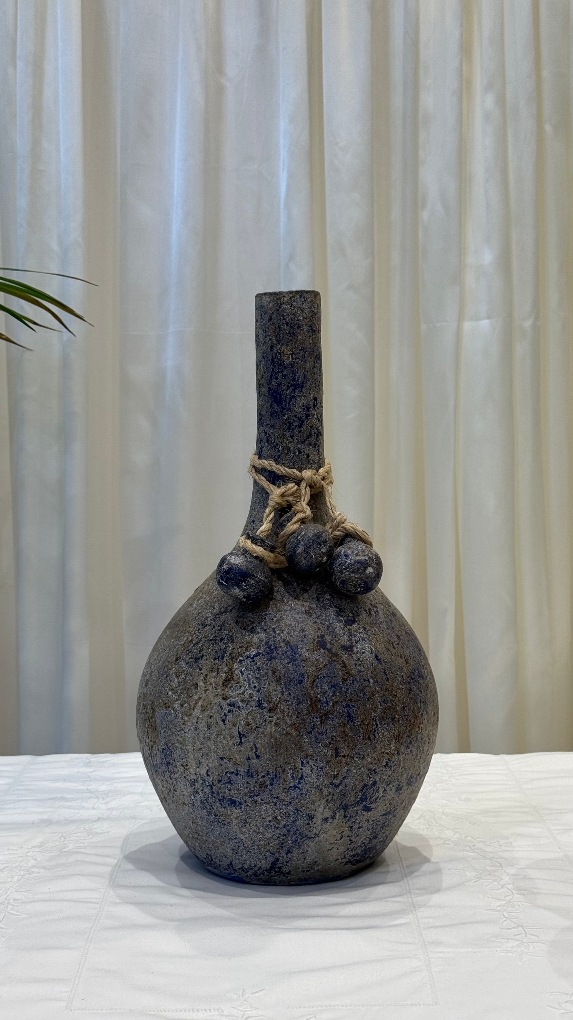The Burning Blue Aballon Vase is a sculptural piece with a textured surface that invites the touch. Delicate nodules accent the neck, adding rhythm and subtle intrigue to its organic form. Striking in presence yet refined in detail, it stands as a centerpiece that embodies thoughtful craftsmanship.