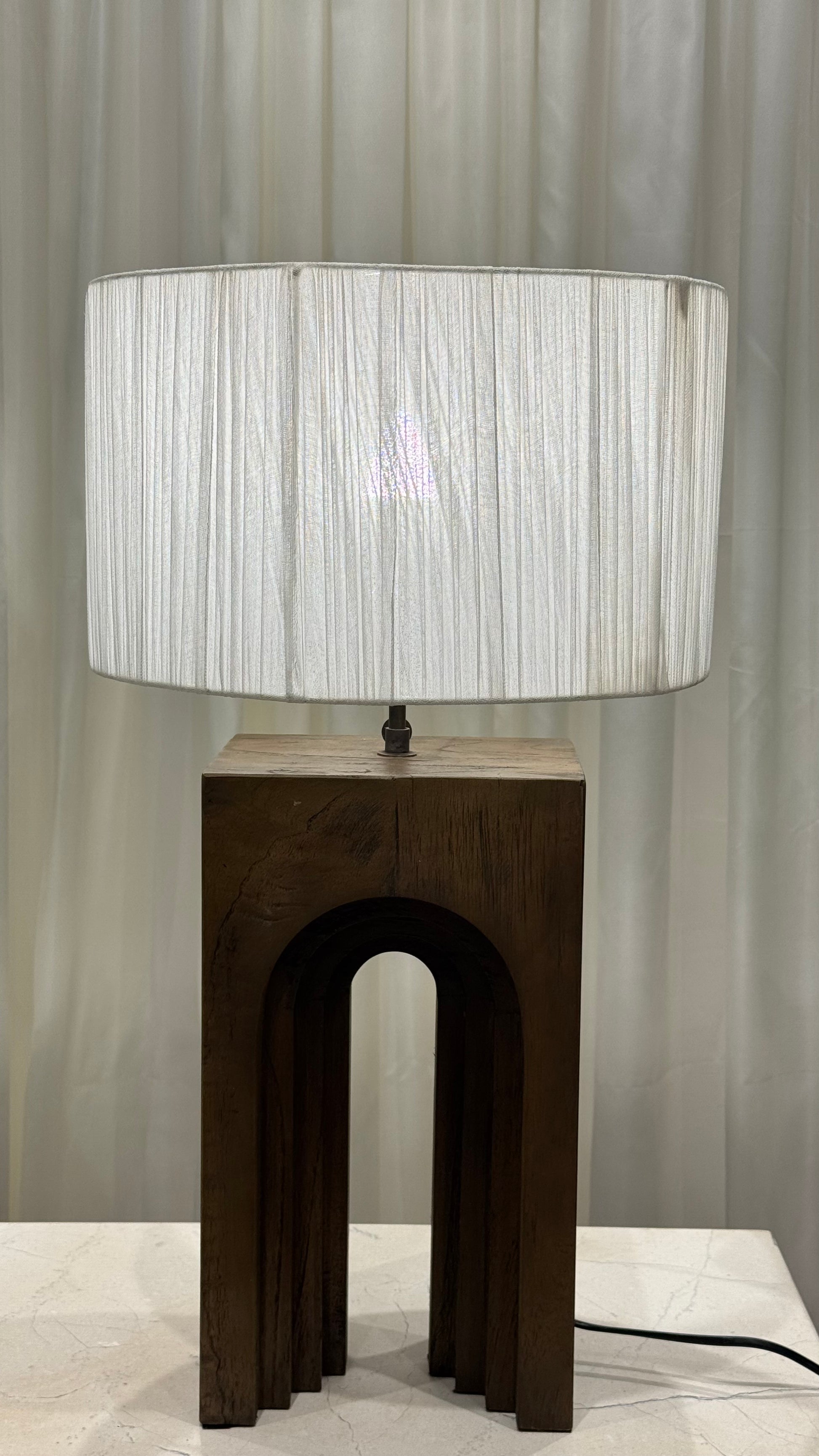 Crafted from solid teak, the Puri Table Lamp features a sculptural, carved base with precise, symmetrical rhythm. Its form conveys presence and weight, offering balance and enduring elegance in any space.